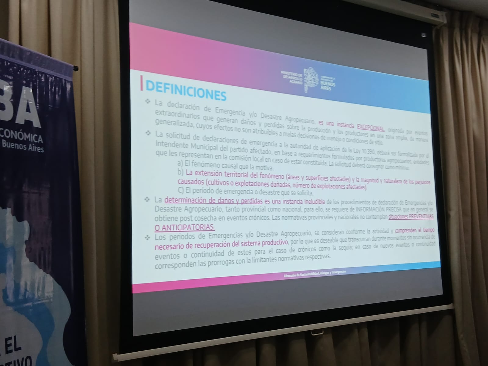 El funcionario del Ministerio de Desarrollo Agrario de la Provincia de Buenos Aires, Fabián Jara, fue quien encabezó la jornada, brindando detalles sobre el sistema de emergencia agropecuaria, las declaraciones juradas, los beneficios fiscales, y otras entidades, al tiempo que el Gerente de la Sucursal local, Laureano Seratto, explicó las líneas de financiamiento disponibles a través del Banco Provincia.