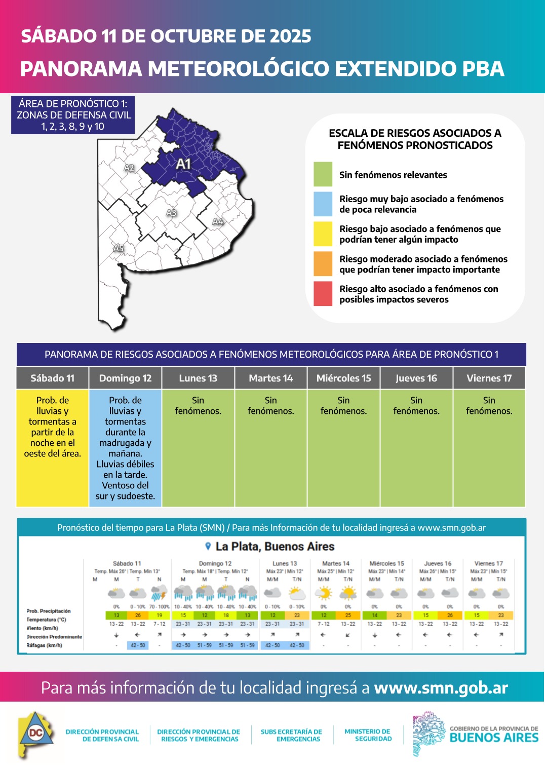 Durante el transcurso de la mañana, el sistema continuará su desplazamiento hacia el este y noreste de la provincia, por lo que se espera que las precipitaciones se extiendan a otras regiones. Para el domingo, el pronóstico indica que las lluvias persistirán, aunque con menor intensidad, especialmente sobre la franja este del territorio bonaerense.