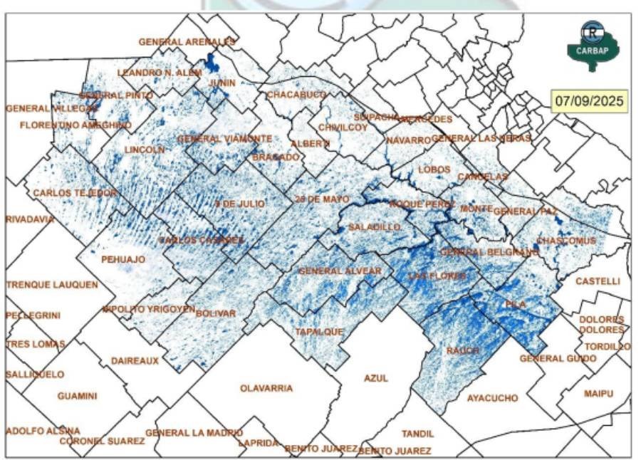 La provincia de Buenos Ayres atraviesa uno de los desafíos hídricos más críticos de las últimas décadas. De sus 30 millones de hectáreas, unos 23,7 millones están destinadas a la producción agropecuaria -cultivos y cría de ganado-, pero según estimaciones recientes de la Bolsa de Cereales del Buen Ayre, más de 4,3 millones permanecen bajo agua o sufren graves problemas de anegamiento. Esta superficie comprometida no solo pone en riesgo la actividad económica rural, sino que afecta directamente la estabilidad de pueblos enteros, la transitabilidad de caminos rurales y el funcionamiento de los sistemas de saneamiento urbano.