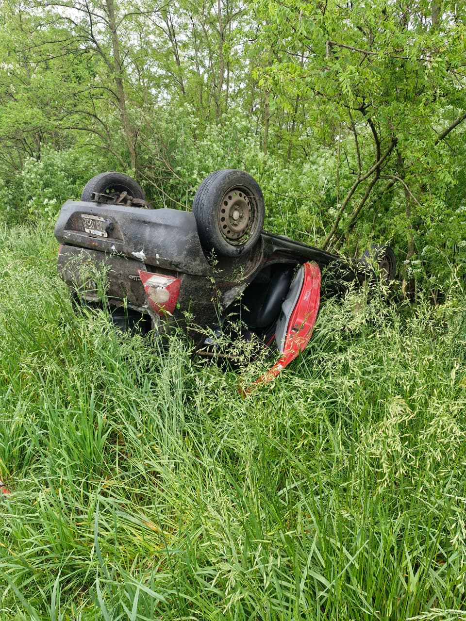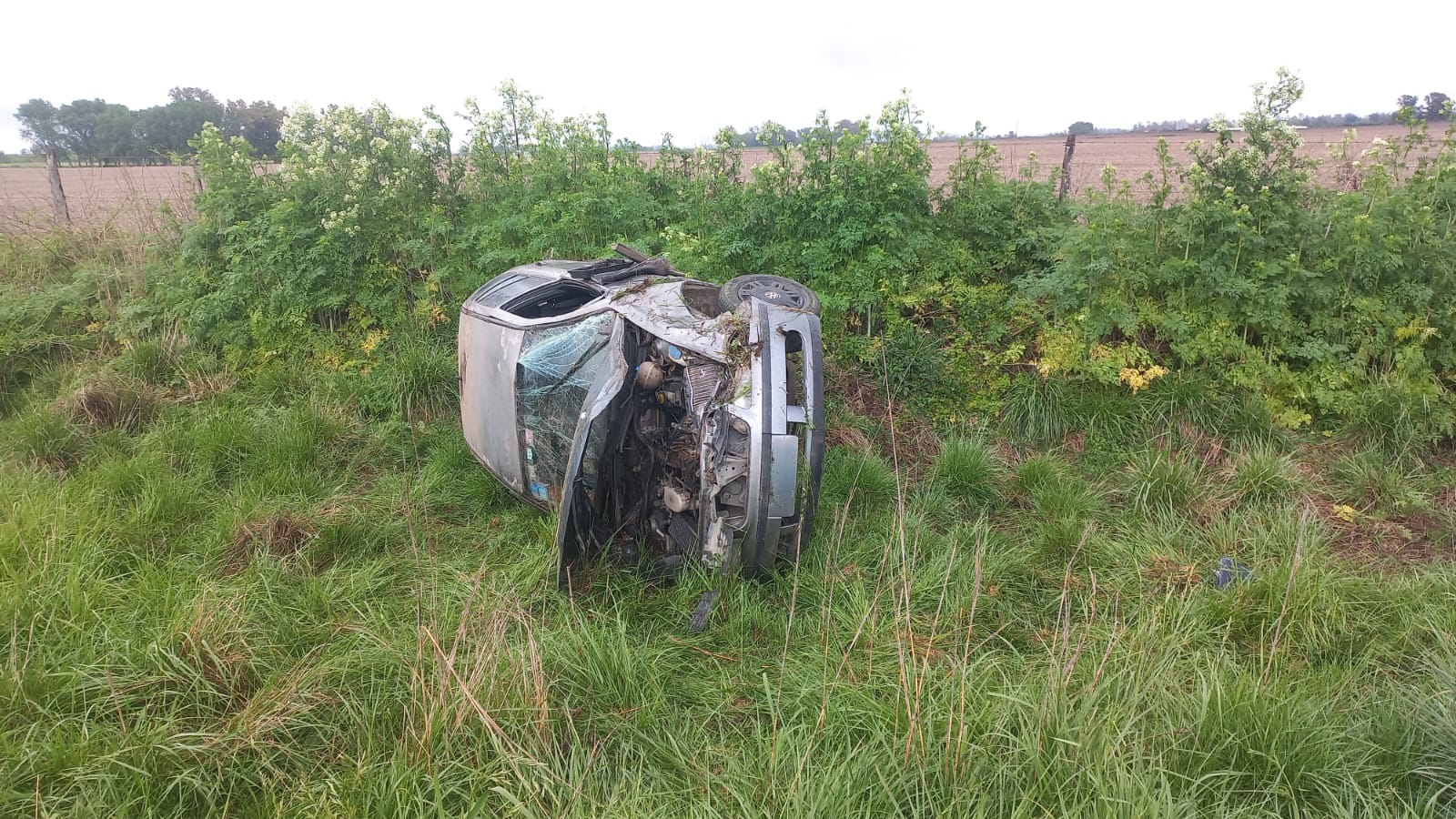 Un vehículo volcado en la Ruta 65 resulta ser un automóvil sustraído en la ciudad de Bolívar.