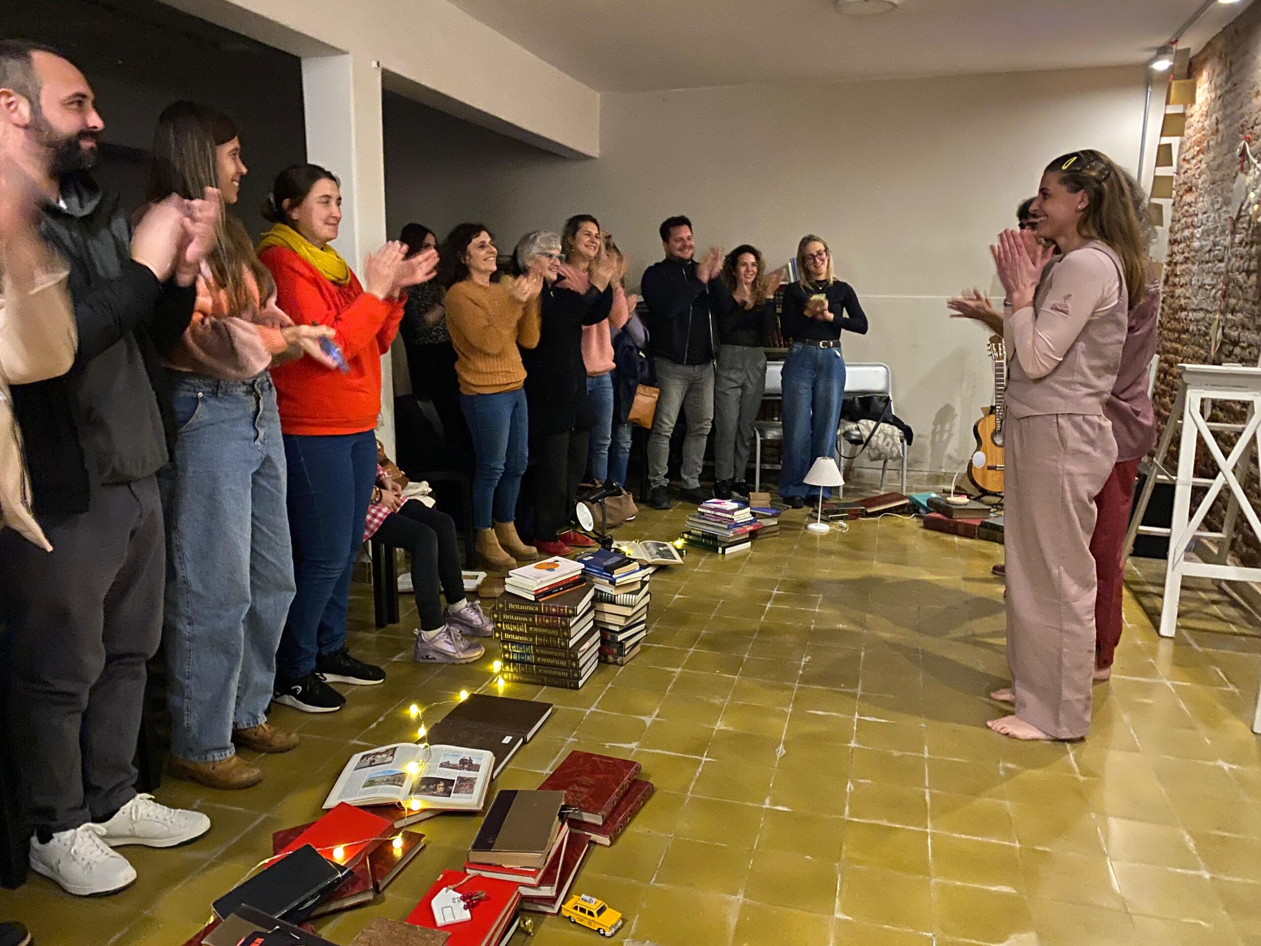 “Escenario de papel” se sitúa en una librería imaginaria, donde los relatos emergen de entre las hojas amarillentas de los libros olvidados. Las libreras que habitan el espacio nos invitan a explorar un universo suspendido en el tiempo, donde cada cuento sucede en el presente de quien lo escucha.
