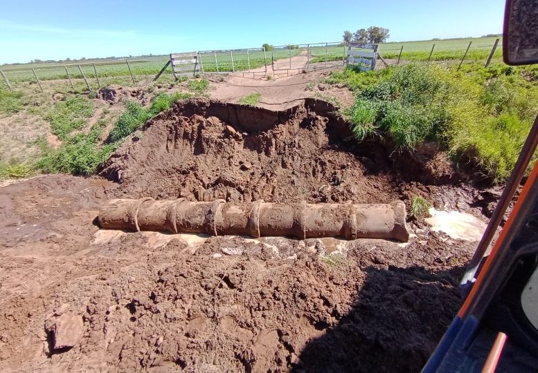 LA NIÑA: Limpieza de Canal hacia Quiroga y trabajos sobre el acceso (P-3); colocación de tubos en caminos T-10 y T-215 junto a la Dirección de Vialidad de la Provincia.