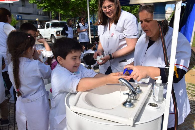 En este marco, se contó con participación de alumnos del turno mañana de la Escuela Primaria Nro. 1, quienes experimentaron con una “estación móvil” de lavado de manos, compartieron juegos con “detectores de bacterias” y realizaron un intercambio de preguntas y respuestas sobre este hábito tan importante para la salud; a la vez que se llevaron como obsequio un jabón para continuar la concientización en sus hogares.