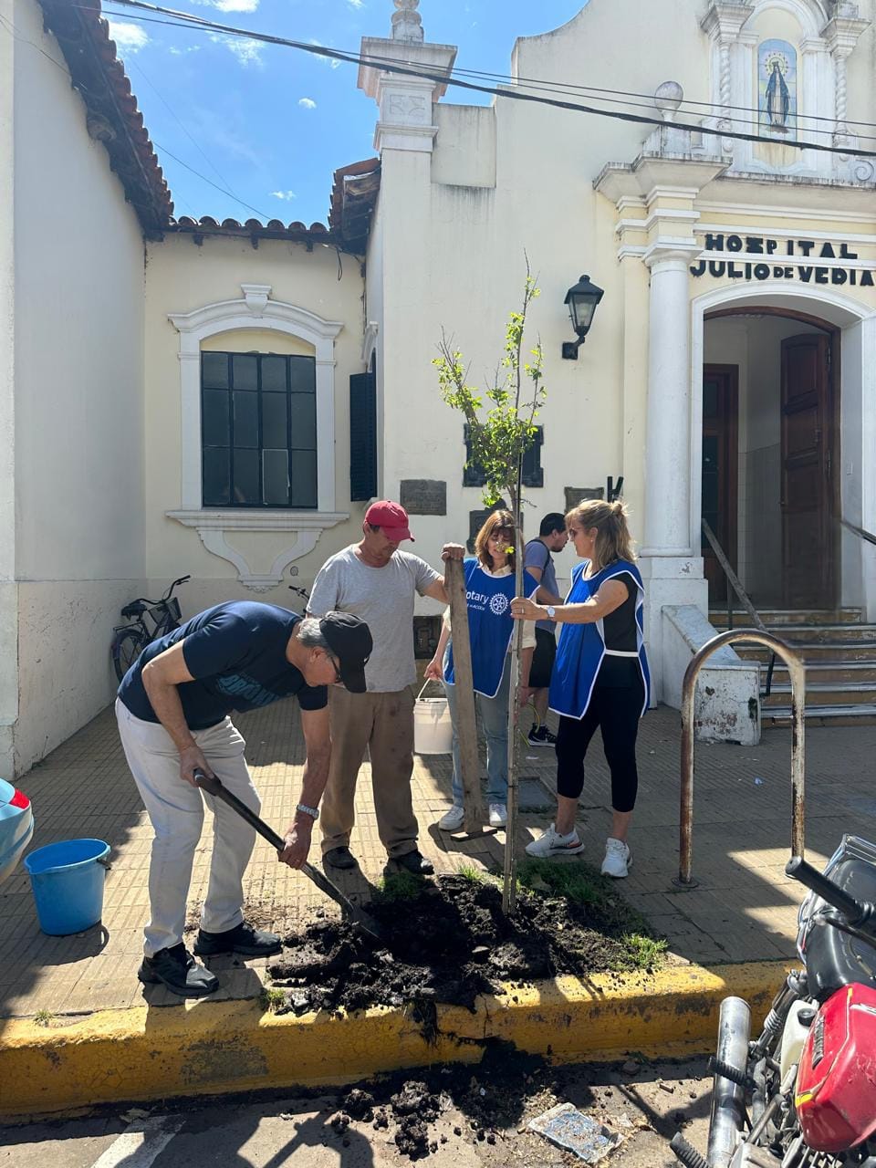 En una nueva jornada de forestación urbana, se plantaron siete ejemplares de Lagerstroemia en la acera del Hospital Julio de Vedia, sobre la Avenida Tomás Cosentino. Esta acción forma parte del programa de plantación de árboles donados por el Rotary Club de Nueve de Julio, que busca contribuir a la creación de un entorno más verde y saludable para los vecinos de la ciudad.
