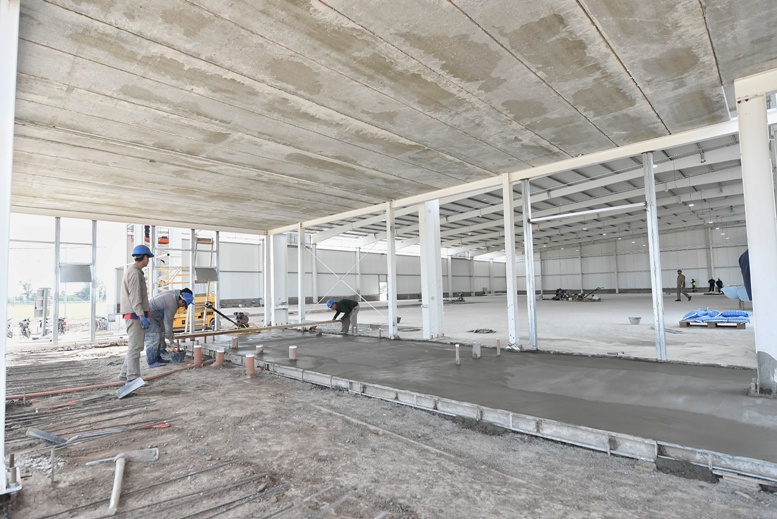Además de la visita a la escuela, Kicillof recorrió el Parque Industrial Tecnológico Mixto PARCUM, donde la empresa Fast Track está construyendo una nave de 2.000 metros cuadrados dedicada a servicios logísticos.