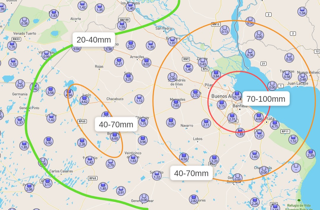 La precipitación en la ciudad de Nueve de Julio es de 74.4 mm a las 9 de la mañana conforme lo hizo saber la Estacion local del SMN.