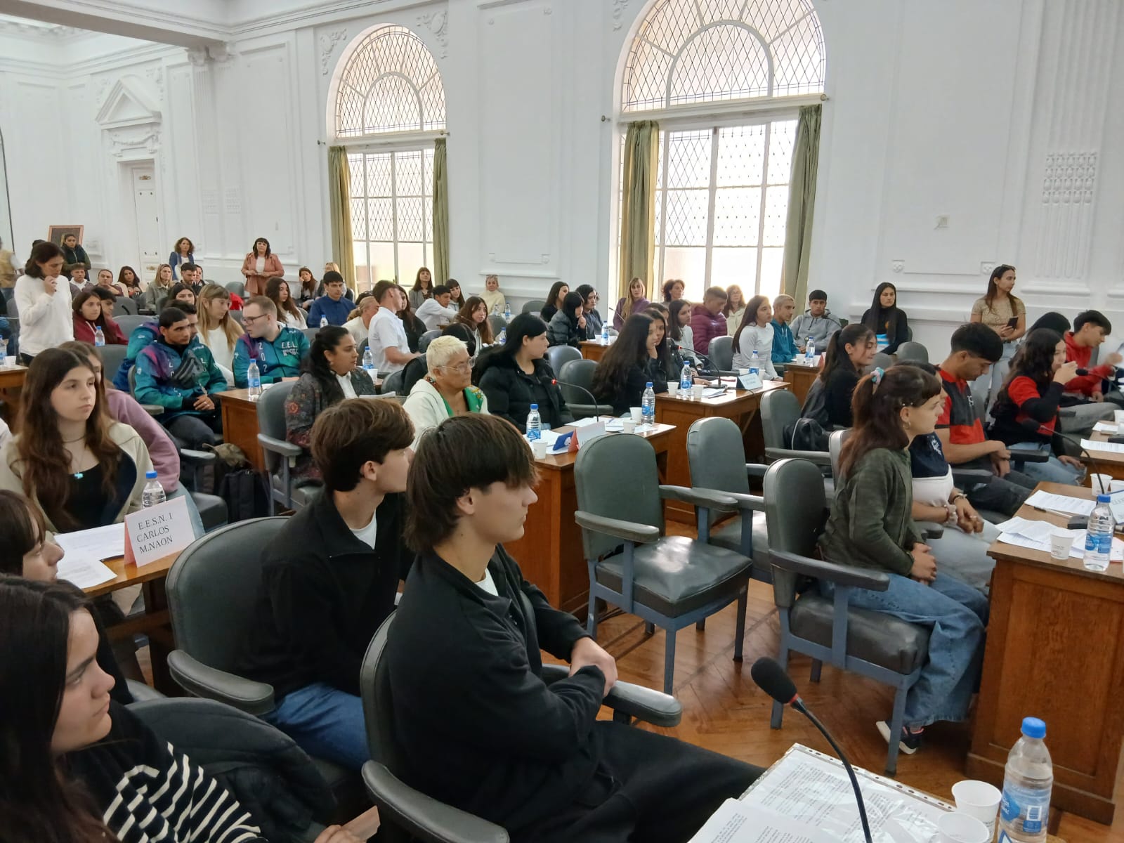 El Salón Blanco del Palacio Comunal de Nueve de Julio se transformó esta tarde en el recinto del Concejo Deliberante, pero con una particularidad: los ediles fueron estudiantes de distintas escuelas secundarias de la ciudad. Bajo la premisa de fomentar la participación democrática y el debate respetuoso, los jóvenes se sentaron en los bancas del Concejo para llevar adelante una sesión estudiantil cargada de propuestas, inquietudes y proyectos.