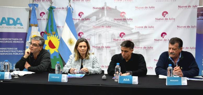 Tras la apertura del encuentro por parte de los mencionados funcionarios provinciales, la Intendente Municipal de Nueve de Julio, María José Gentile, agradeció la presencia de las diferentes delegaciones de distritos vecinos y destacó la importancia de estas reuniones para tratar la emergencia hídrica que afecta a la región.