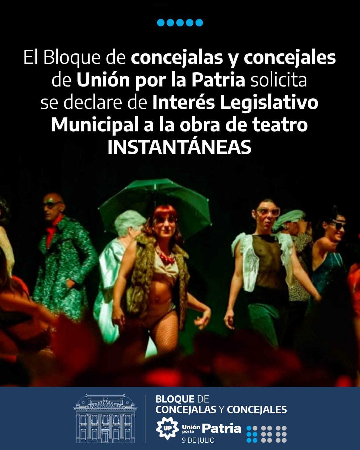 El Bloque de concejalas y concejales de Unión por la Patria presentó un Proyecto de Resolución para declarar de Interés Legislativo Municipal a la obra de teatro “Instantáneas”, una creación de la compañía VÓRTICE de Danza Teatro, producida íntegramente por profesionales de la ciudad de 9 de Julio.