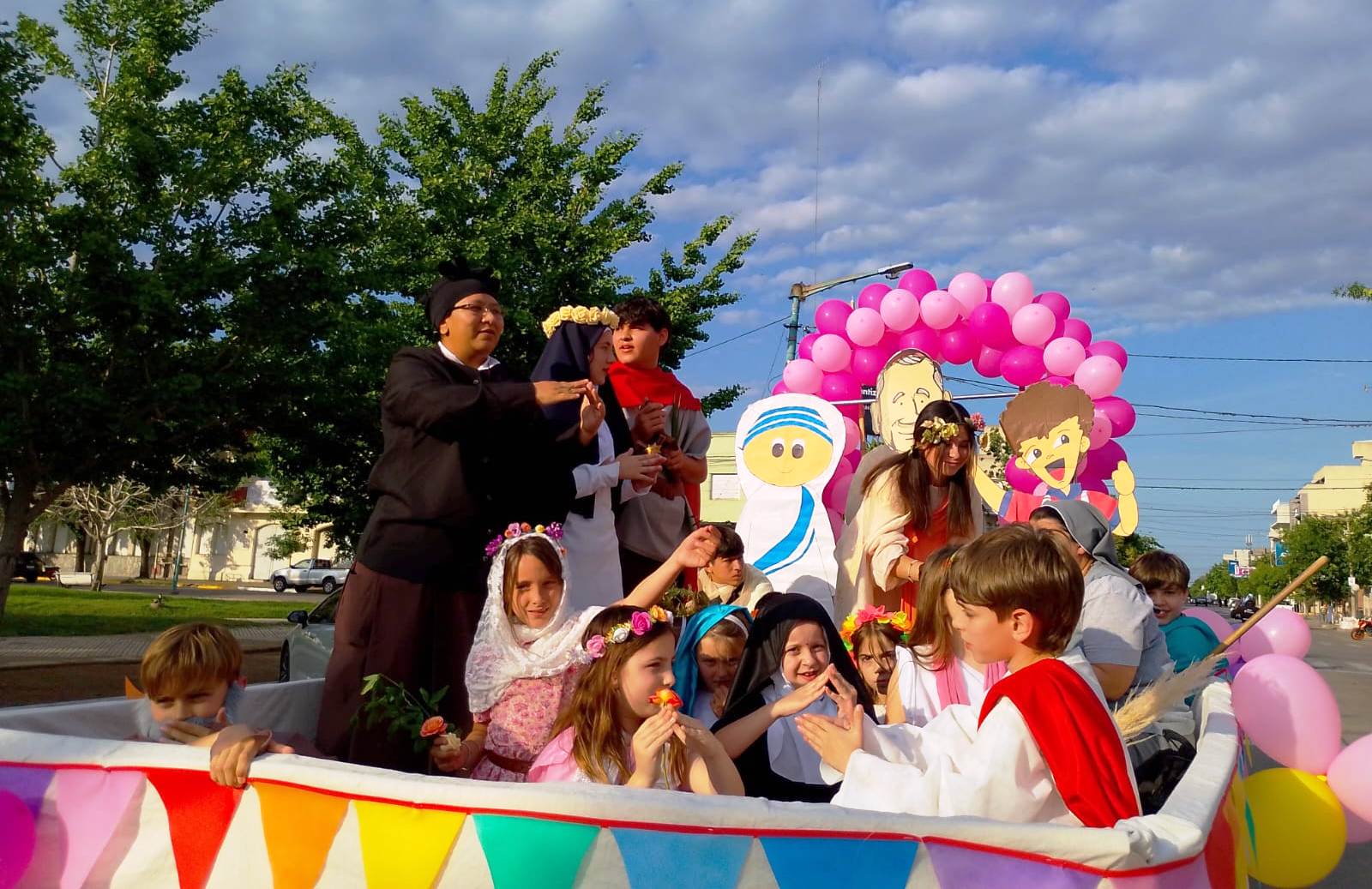 El marco festivo estuvo encabezado por niños de catequesis y sus familias quienes representaron a santos