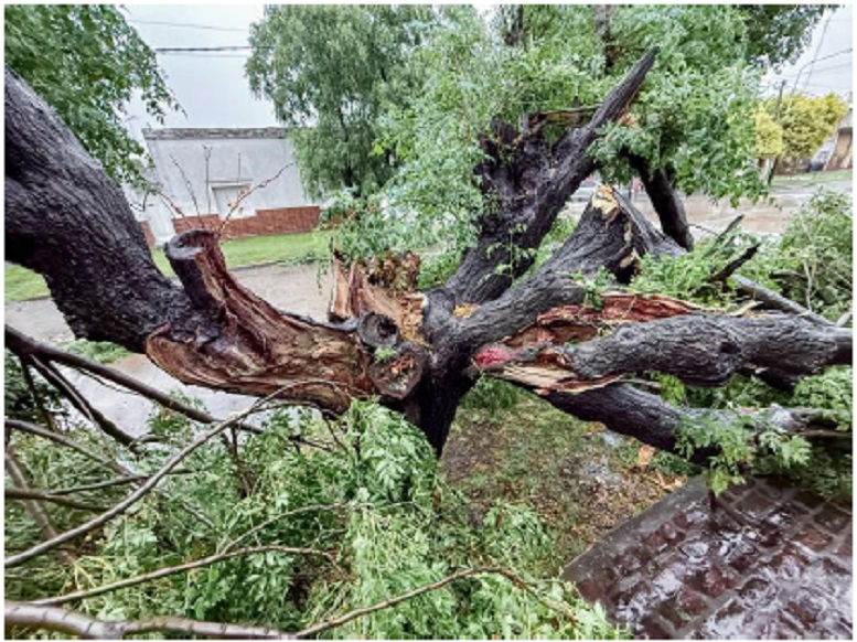Una intensa tormenta con ráfagas de viento cercanas a los 90 km/h afectó la ciudad de Los Toldos en la madrugada del martes, provocando la caída de alrededor de 15 árboles de raíz y diversos daños materiales en varias zonas del casco urbano. Además de los árboles derribados, numerosas ramas y partes de árboles quedaron esparcidas por calles y veredas, dificultando la circulación en algunos puntos.