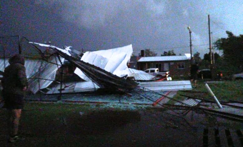 La localidad de Urdampilleta, en el partido bonaerense de San Carlos de Bolívar, se vio afectada este lunes por un violento temporal que generó voladuras de techos, destrucción de instalaciones deportivas y un prolongado corte de energía eléctrica.