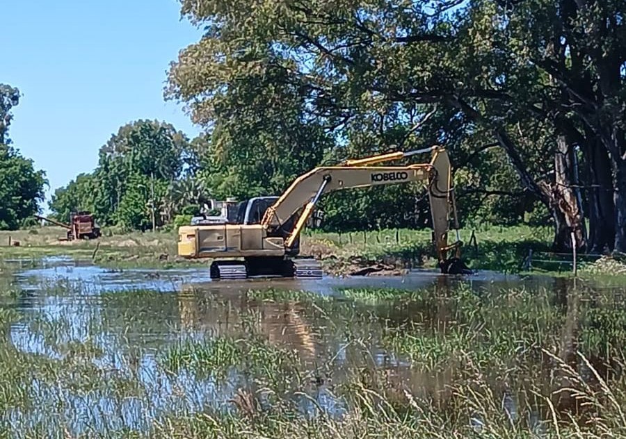 Desagote de canales en la localidad de Dennehy, especialmente cerca de viviendas afectadas por las inundaciones.