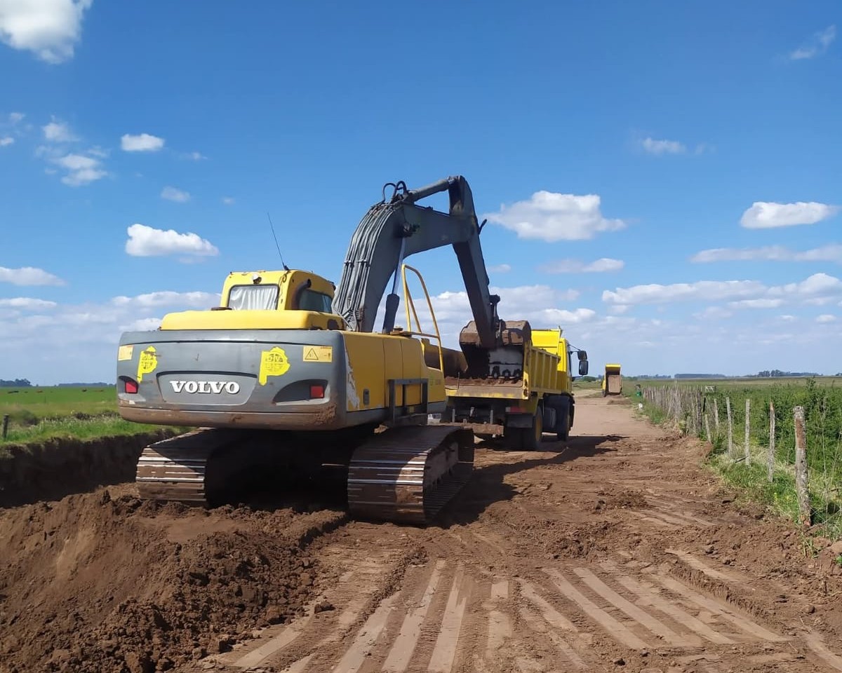 Colocación de tubos en Los Caldenes, para mejorar el drenaje.