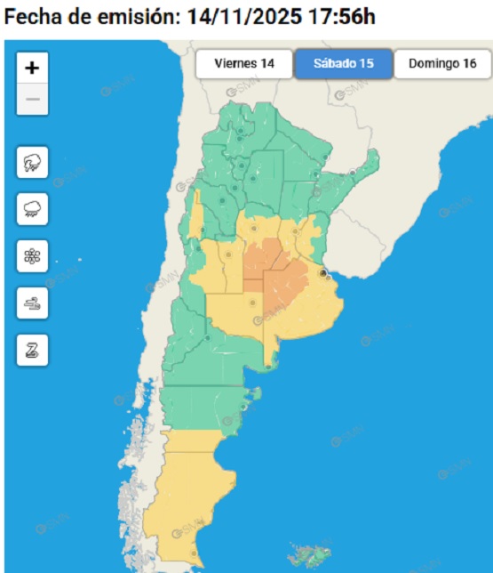 Un informe emitido por el Servicio Meteorológico Nacional (SMN) cerca de la hora 18 de este viernes destaca un alerta naranja para algunas áreas de la provincia de Buenos Aires, como Nueve de Julio, mientras que otras zonas del terrritorio bonaerense están bajo alerta amarilla debido a la posibilidad de condiciones meteorológicas severas.
