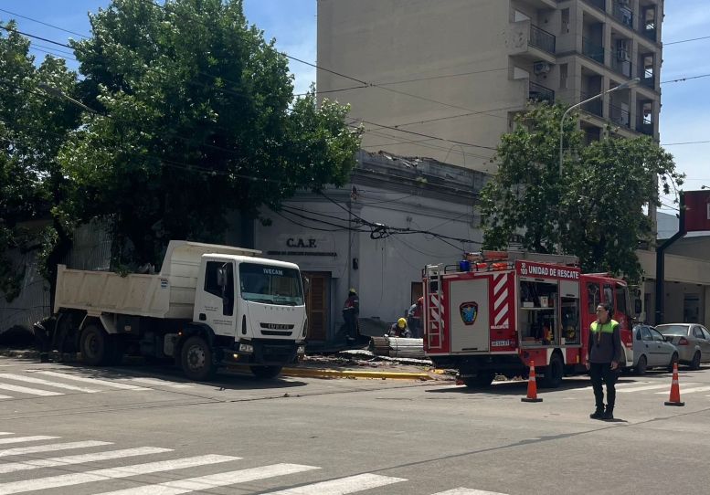 A su vez, el municipio trabajó conjuntamente con Bomberos Voluntarios y la CEyS para remover los escombros del techo afectado en calle Mitre y Santa Fe.
