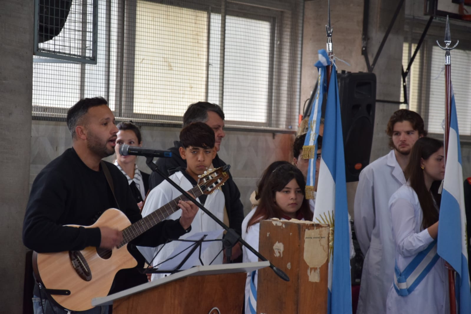 La jornada comenzó con el solemne ingreso de las Banderas de Ceremonia y la entonación del Himno Nacional Argentino, interpretado por la talentosa Antonella Anca, quien emocionó a los presentes con su interpretación. Posteriormente, el acto continuó con una oración religiosa a cargo del Padre Luis Casalá y el Pastor Juan Pablo Fursi, quienes ofrecieron palabras de reflexión y recogimiento, invitando a los asistentes a hacer una pausa de contemplación.