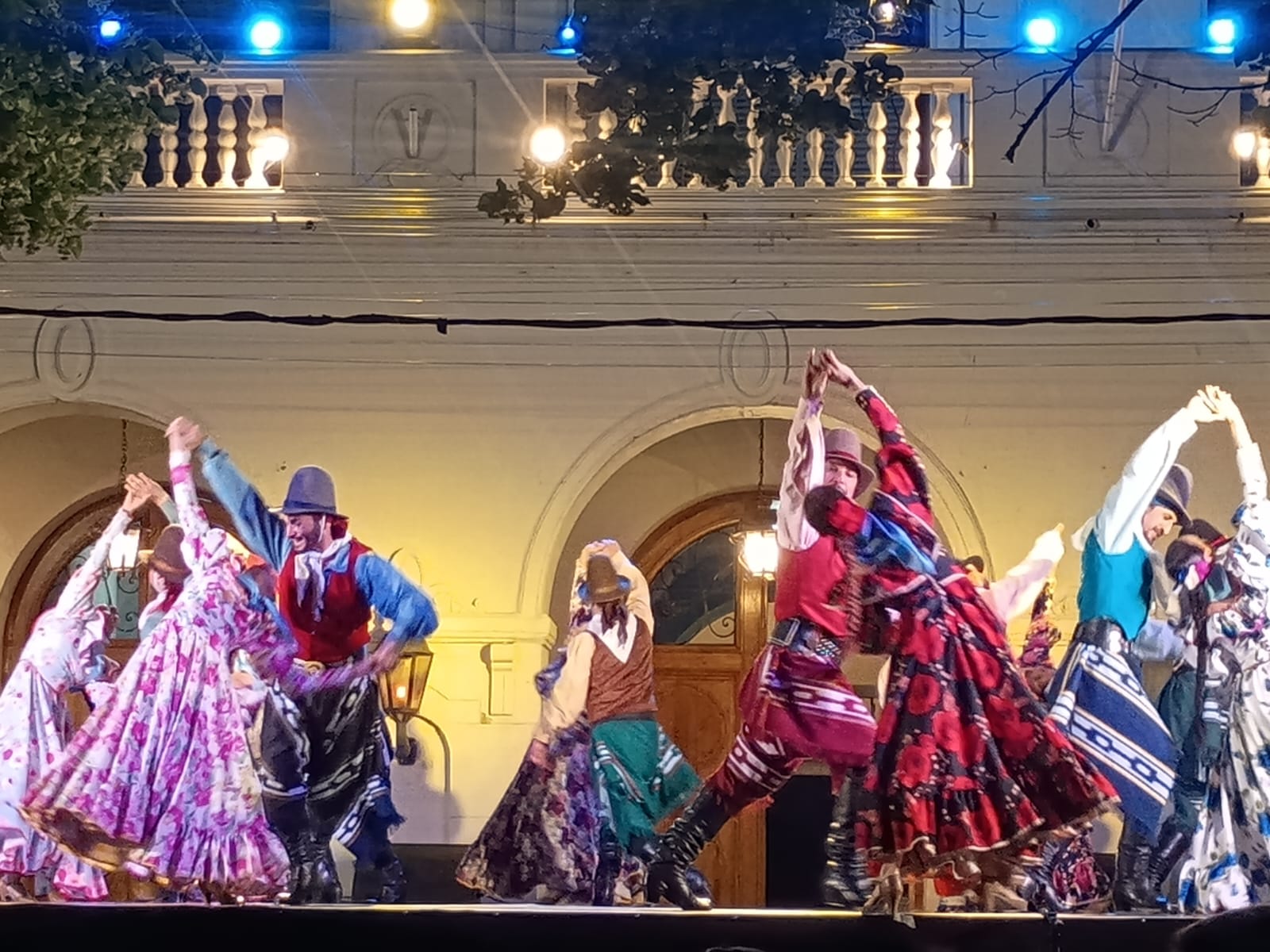 Este sábado 22 de noviembre, en el marco del Día de la Música, la Plaza San Martín de Carlos Casares se llenó de música, danza y tradición argentina, cuando el Ballet Folklórico Nacional, dirigido por Glenda Casaretto y con la colaboración del subdirector Fernando Muñoz, presentó su espectáculo “Nuestras Raíces” como parte del cierre del programa cultural 2025 de la Sociedad Israelita de Carlos Casares (SICC). Esta presentación marcó la primera vez que el ballet se presentó en esa ciudad, en el marco de su 35º aniversario.