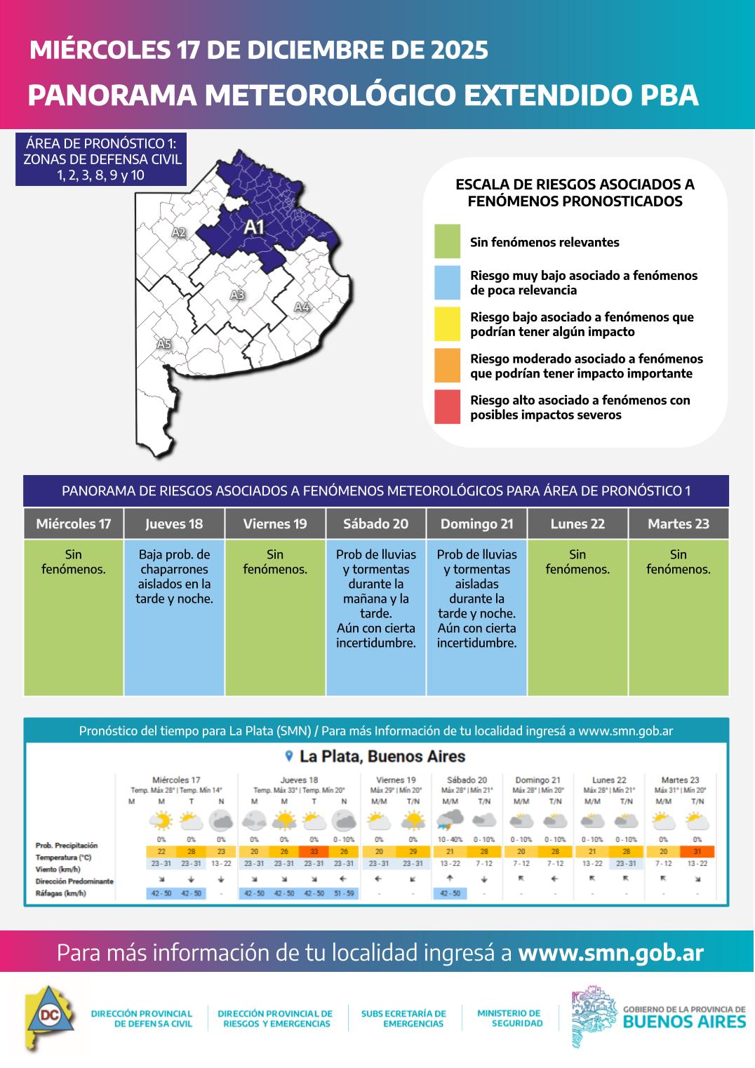 Durante la noche, el frente frío se ubicaría sobre la región de la costa atlántica, donde podría generar algunas tormentas durante la madrugada del jueves. A partir de las últimas horas de la mañana del jueves, se espera una mejora gradual de las condiciones meteorológicas, sin fenómenos relevantes, con vientos predominantes del sector sur.