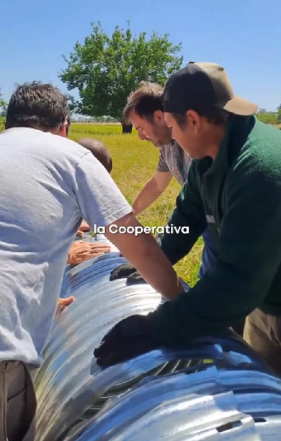“Muy buenos días para todos. Estamos acá en la localidad de Morea junto al presidente de la Cooperativa Eléctrica Mariano Moreno, Matías Losinno, quien en el día de hoy está haciendo entrega de una donación de 16 tubos para nuestra localidad, destinados al arreglo y la solución del Camino Morea–De Ignac, en el cual estamos trabajando. Desde nuestro lugar y de parte de toda la comunidad queremos agradecer a la Cooperativa Mariano Moreno por estar presente y por esta donación”.