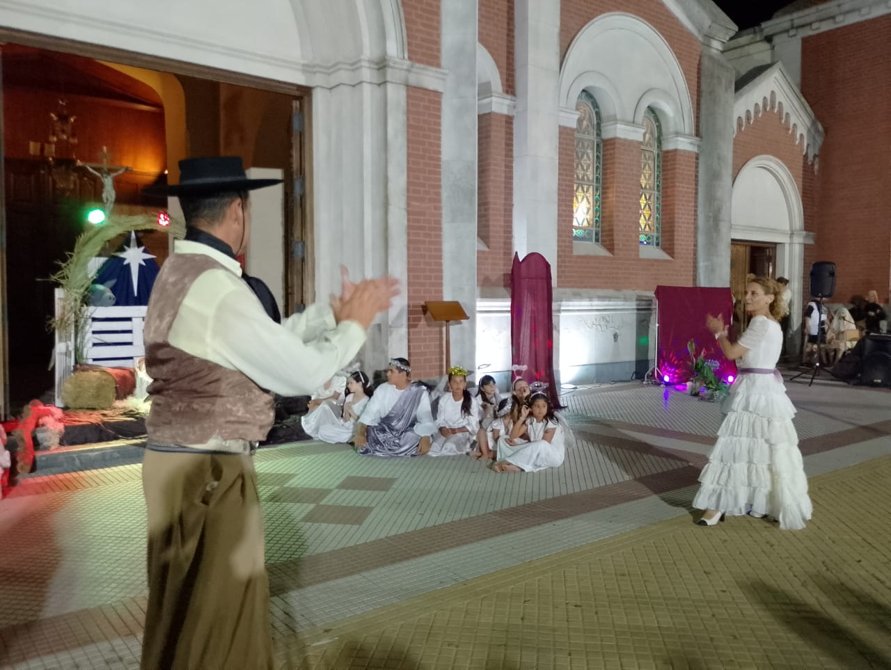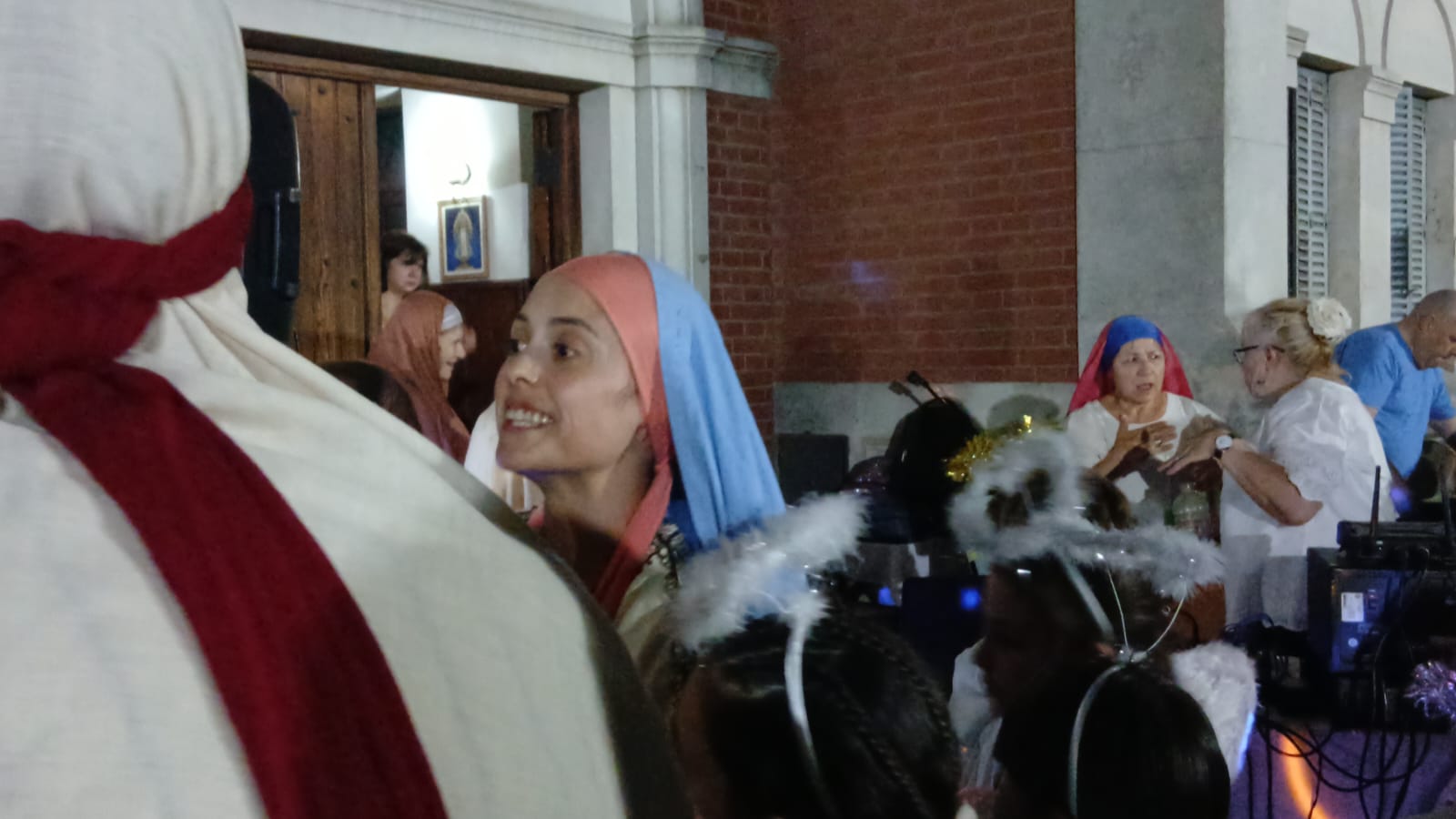 La representación contó con la participación de más de 50 personas en escena, entre niños, jóvenes y adultos, quienes recrearon los momentos más significativos del nacimiento de Jesús. Uno de los momentos más conmovedores fue la presencia de un bebé de seis meses, que encarnó al Niño Jesús, despertando ternura y emoción entre los presentes, llevado en alza por María (Agustina Martinelli), con devoción, cuido y cariño como verdadera Madre.