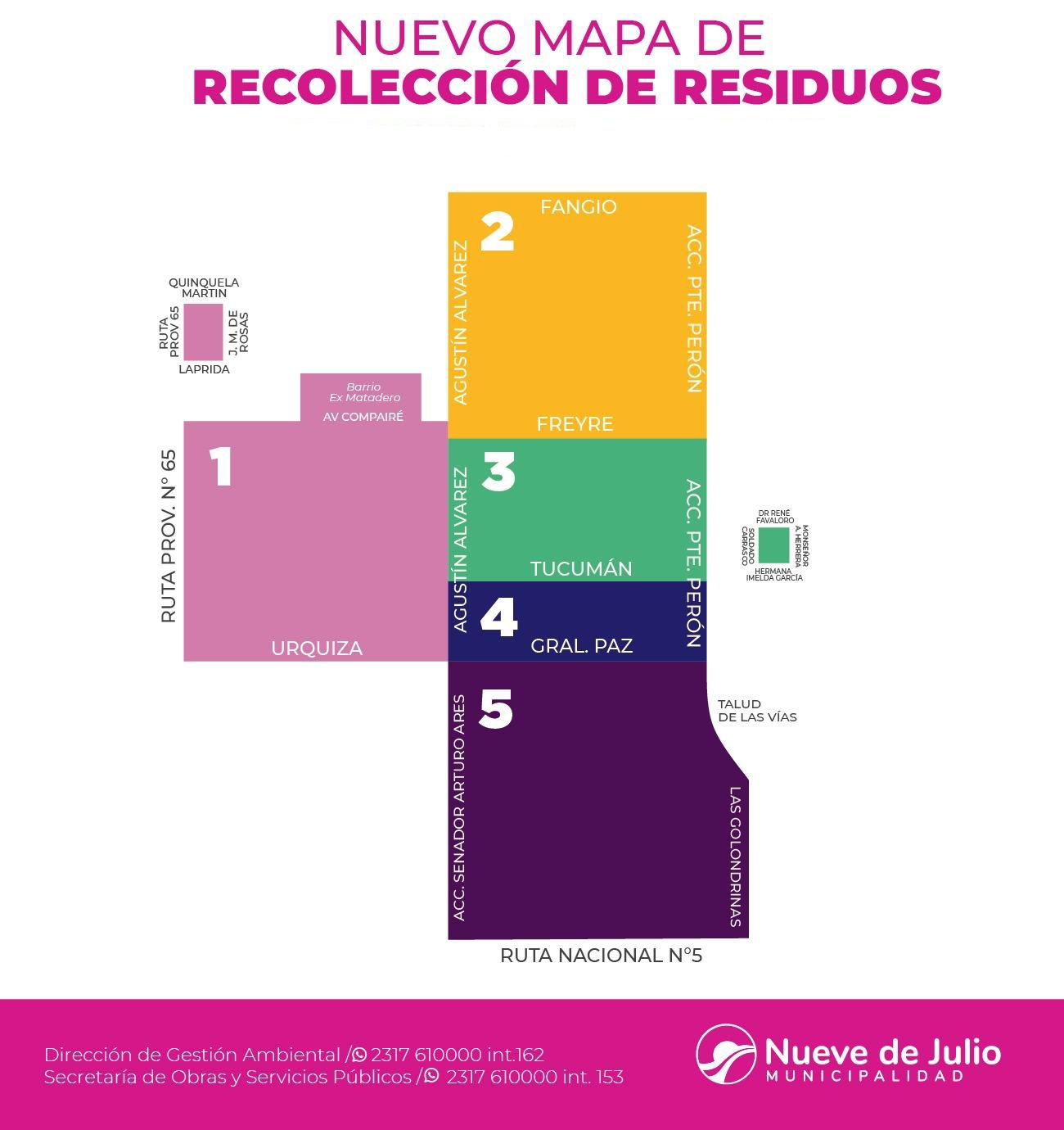 La Municipalidad de Nueve de Julio detalló el nuevo esquema de zonas y días de recolección, vigente desde abril de 2025, con el objetivo de optimizar el servicio y evitar atrasos