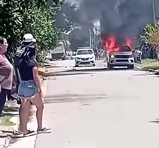 Sin embargo, la situación se desbordó cuando los familiares y allegados de la víctima intentaron linchar a los detenidos. Un grupo numeroso de personas arrojó piedras y otros objetos contundentes contra los efectivos, destrozando dos patrulleros – una Toyota Hilux y un Renault Logan – y, finalmente, prendiendo fuego a ambos vehículos.