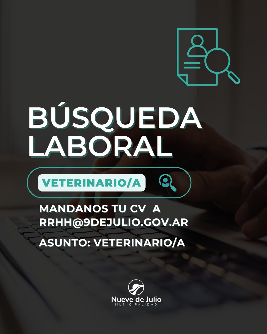 La Municipalidad de Nueve de Julio, a través de su Dirección de Recursos Humanos, está llevando a cabo la búsqueda de un/a veterinario/a para sumar a su equipo de trabajo. El cargo está destinado a un profesional con título universitario en veterinaria, que se encargará de realizar diversas tareas relacionadas con la salud animal en el municipio.
