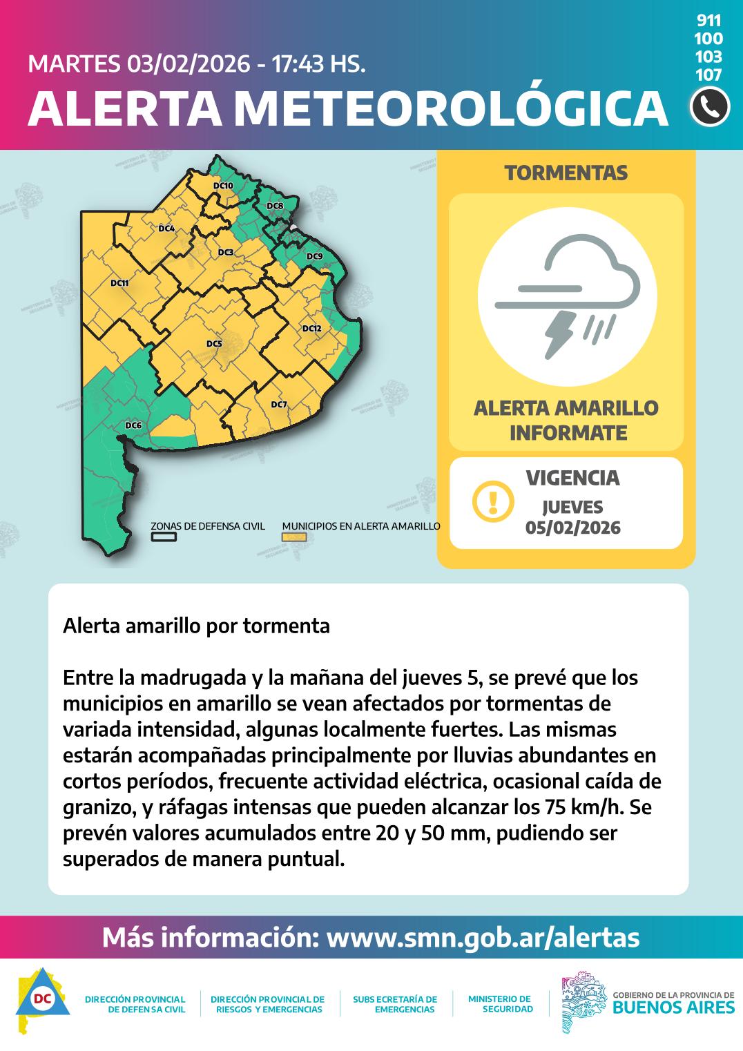 Este miércoles 4 de febrero, entre la madrugada y la mañana, se esperan condiciones inestables en el noroeste de la provincia de Buenos Aires (zonas DC 4 y 11), donde se producirán lluvias y tormentas de variada intensidad.