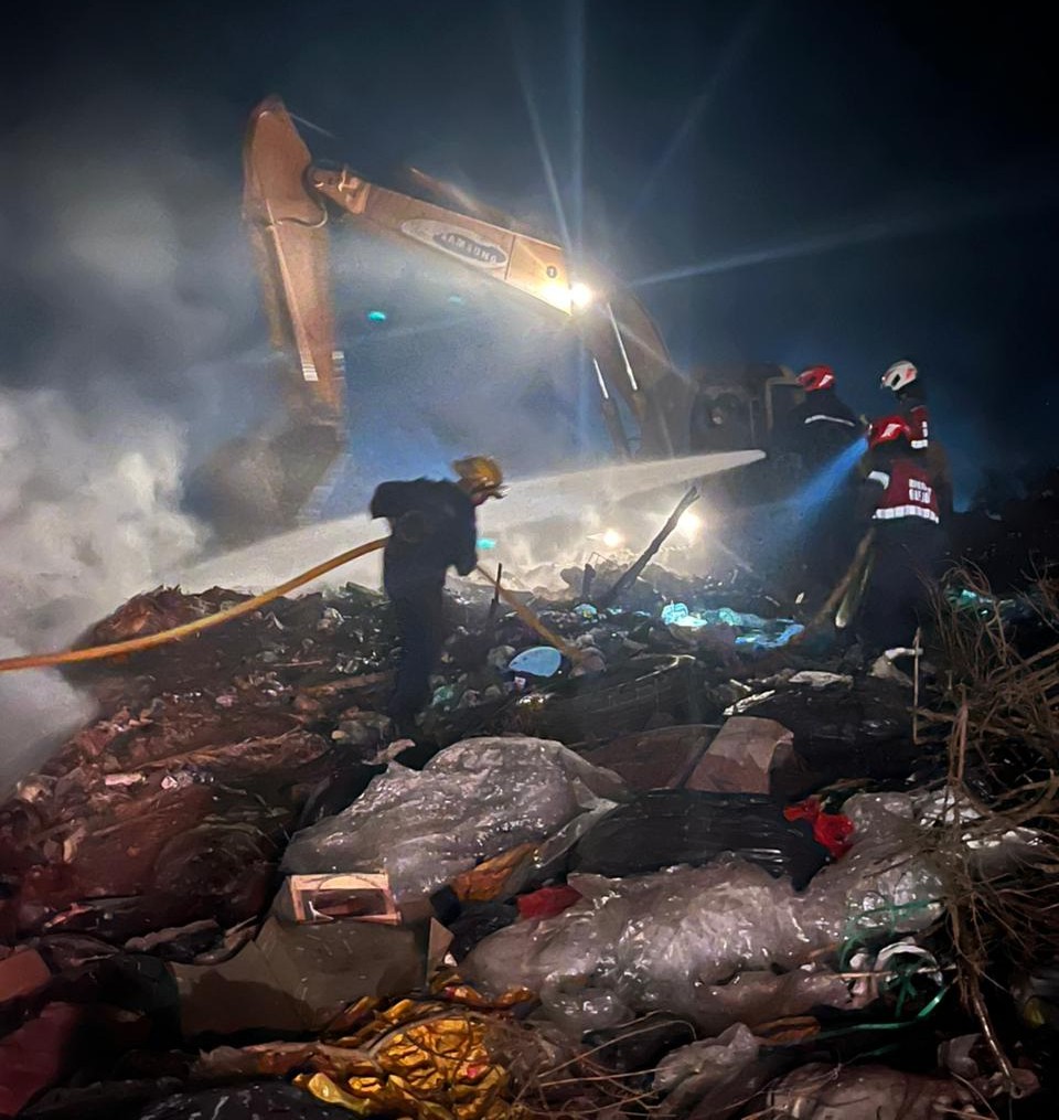 A las labores de extinción se sumó una retroexcavadora municipal, que trabajó hasta altas horas de la noche removiendo residuos y realizando movimientos de suelo para reducir al mínimo la posibilidad de reinicios.