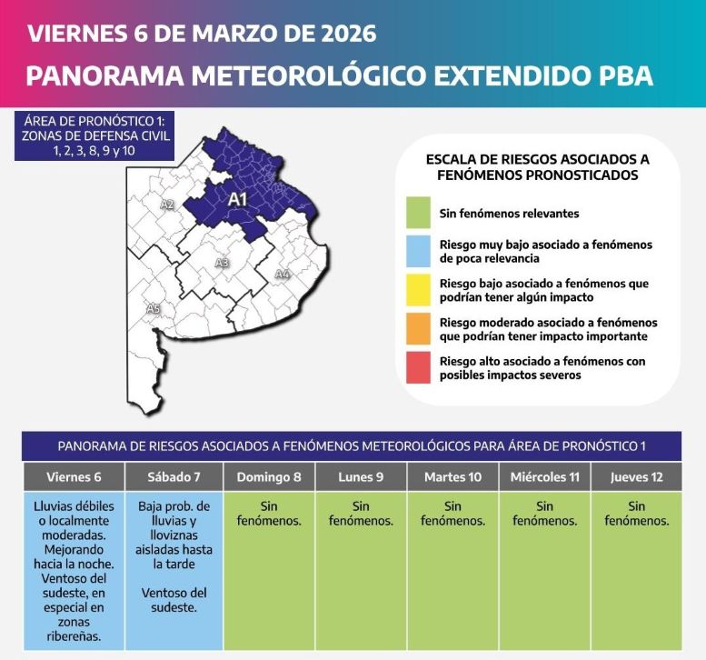 De esta manera, el tiempo en la provincia de Buenos Aires se mantendrá cambiante durante los próximos días, alternando entre períodos de nubosidad, mejoras temporarias y la posibilidad de precipitaciones aisladas en diferentes regiones.