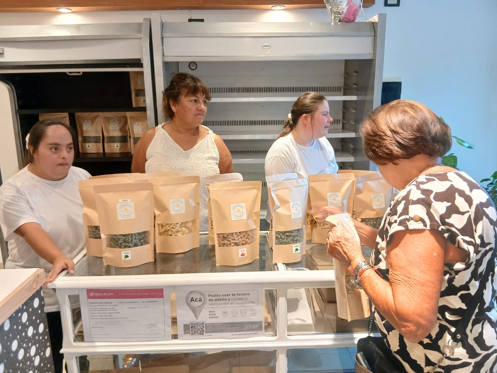Este sabado 7 se inauguró oficialmente en Nueve de Julio el local Codo a Codo, un espacio dedicado a la elaboración y venta de pastas artesanales inclusivas. Ubicado en Cavalari 1232, el proyecto se destaca por integrar a jóvenes con discapacidades en la producción, permitiéndoles participar activamente en todas las etapas de preparación de los productos.