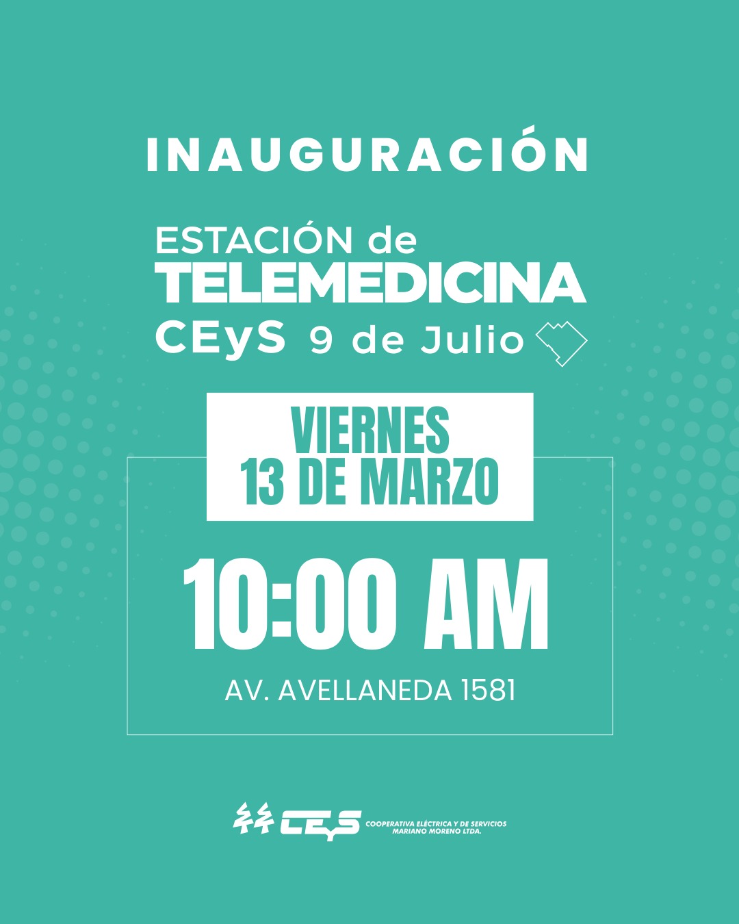 La Cooperativa Eléctrica y de Servicios “Mariano Moreno” Ltda. (CEyS) llevará adelante este viernes 13 de marzo una jornada abierta a la comunidad con diversas propuestas vinculadas al cuidado de la salud, la prevención y el acceso a nuevas herramientas de atención médica.