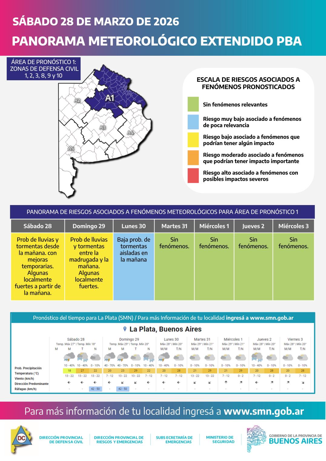 - Alternancia de lluvias y períodos de sol, con posibilidad de tormentas aisladas.