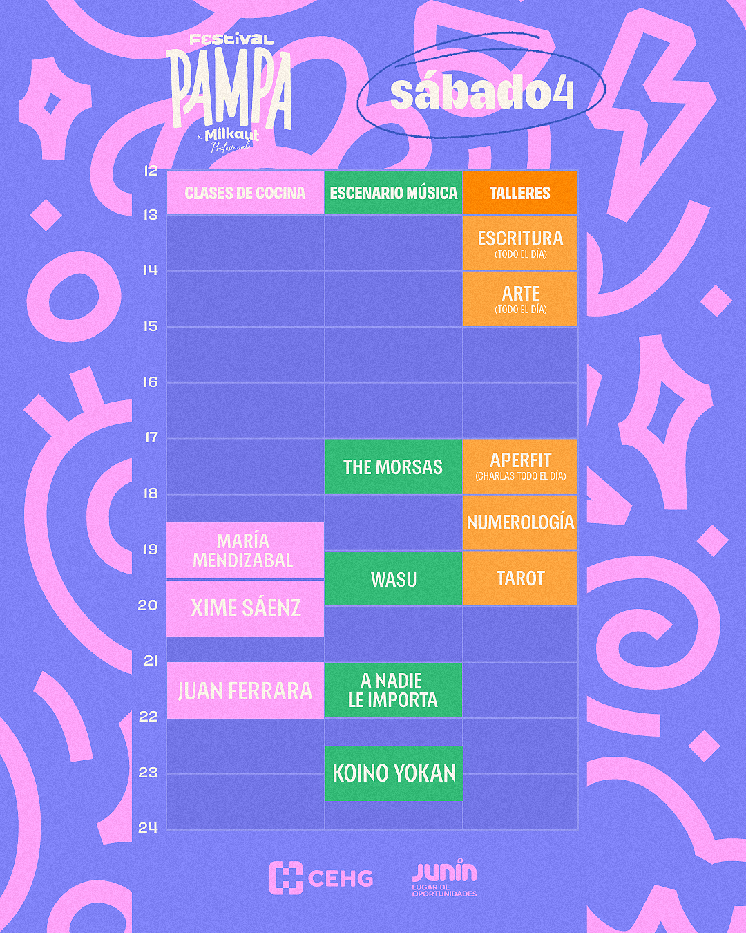 Como gran novedad, el Festival Pampa 2026 incluirá la tercera ronda clasificatoria del Torneo Federal de Chefs de FEHGRA, certamen que busca destacar la gastronomía argentina y seleccionar a los mejores chefs del país. El torneo se realizará el viernes 3 de abril, de 11 a 16 horas, y será abierto al público. El equipo ganador de Junín representará a la ciudad en la Final Nacional, que se desarrollará en HOTELGA 2026, del 2 al 4 de septiembre, en La Rural, Predio Ferial de Buenos Aires.