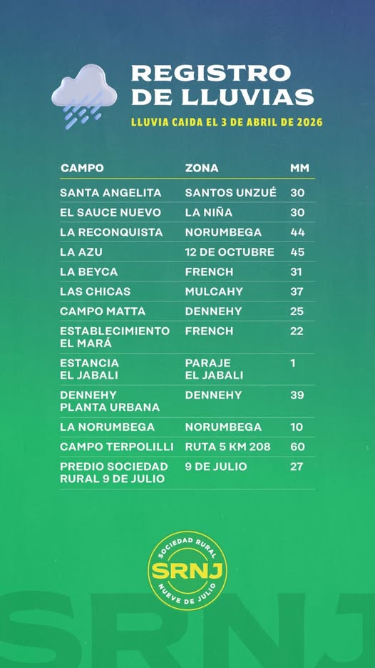 La lluvia de este viernes hasta la hora 21 es de 19.7mm conforme lo hizo saber la Estación Nueve de Julio del Servicio Meteorológico Nacional.