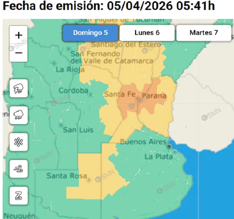 A nivel nacional, nueve provincias permanecen bajo alerta por tormentas fuertes, aunque la región pampeana tendrá solo precipitaciones leves.