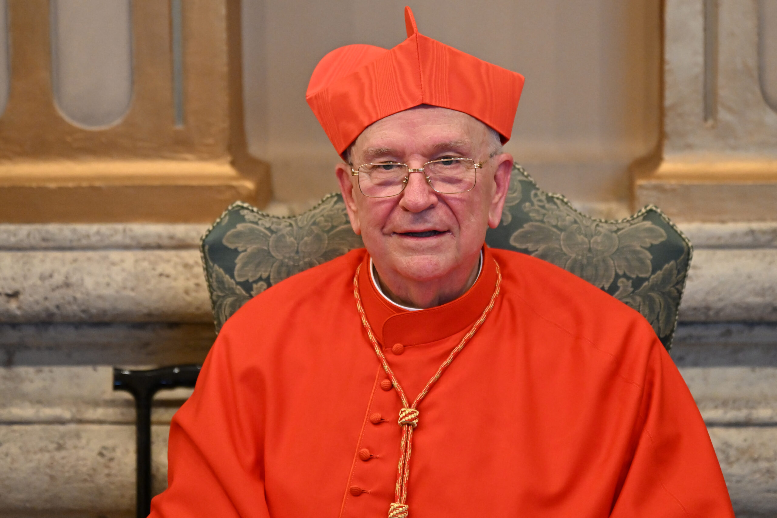 Newly elevated Cardinal, Monsignor Fernando Vergez Alzaga attends a courtesy visit of relatives following a consistory for the creation of 20 new cardinals by the Pope, on August 27, 2022 in The Vatican. (Photo by Alberto PIZZOLI / AFP)