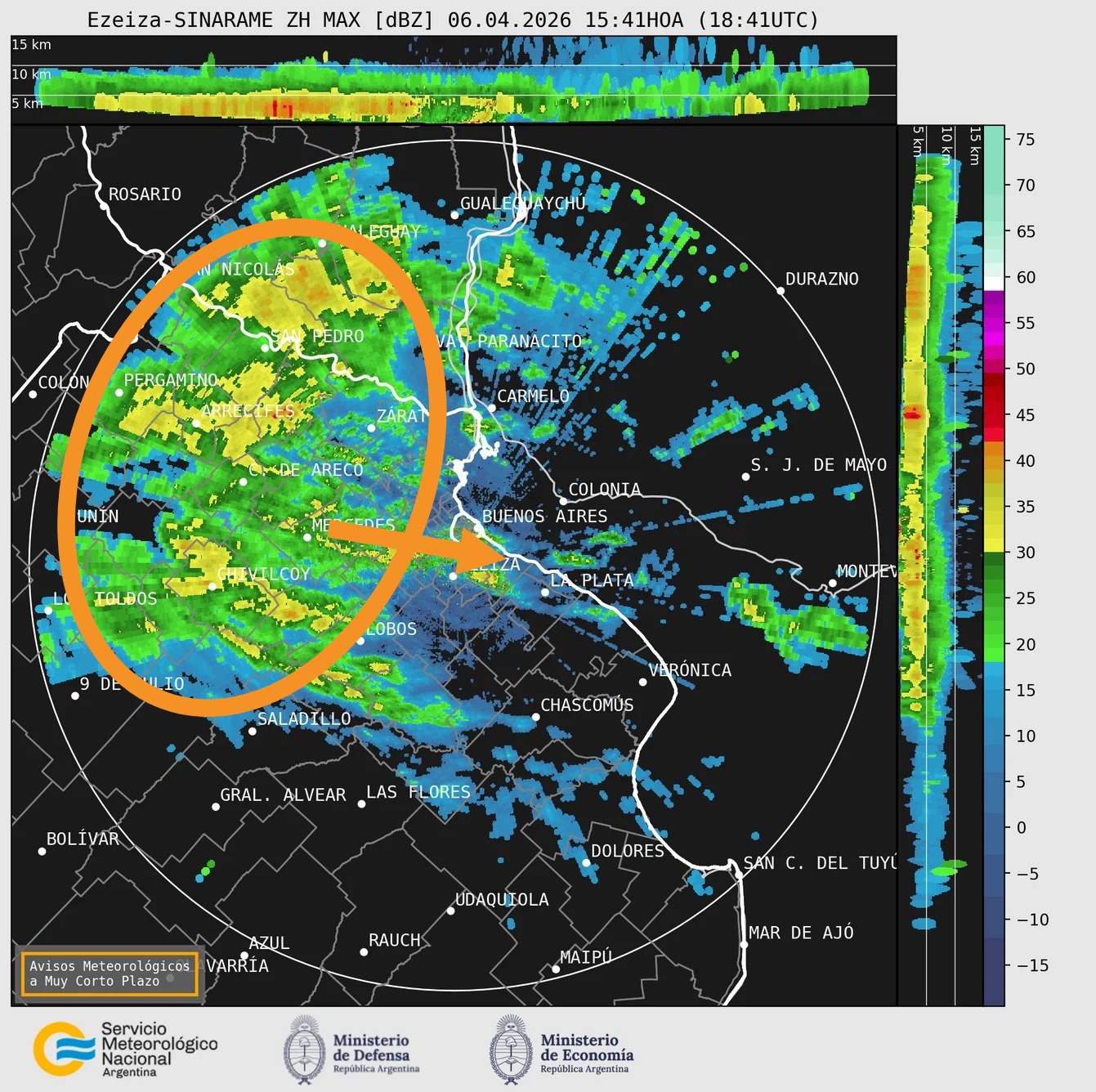 De acuerdo con las estimaciones, este frente de lluvias avanzará hacia el Área Metropolitana de Buenos Aires (AMBA) durante la tarde, con un horario probable de llegada situado entre las 17 y las 19 horas. En esa región, se espera que las precipitaciones mantengan en general una intensidad débil a moderada.