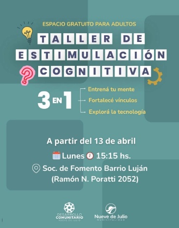La Municipalidad de Nueve de Julio, a través de la Dirección de Trabajo Social, pondrá en marcha un nuevo espacio de estimulación cognitiva destinado a adultos mayores. La iniciativa tiene como objetivo ofrecer encuentros pensados para ejercitar la memoria, fortalecer los vínculos sociales y familiarizar a los participantes con nuevas tecnologías, promoviendo un ambiente de participación y aprendizaje colectivo.