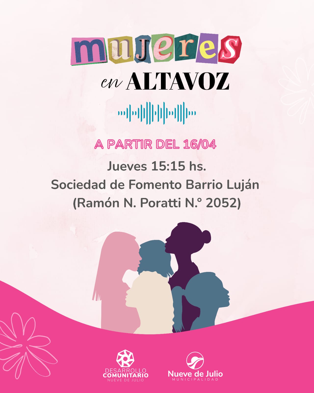 El primer encuentro será el jueves 16 de abril, a las 15:15 horas, en la Sociedad de Fomento del Barrio Luján. La actividad es abierta a todas las interesadas y no requiere inscripción previa.