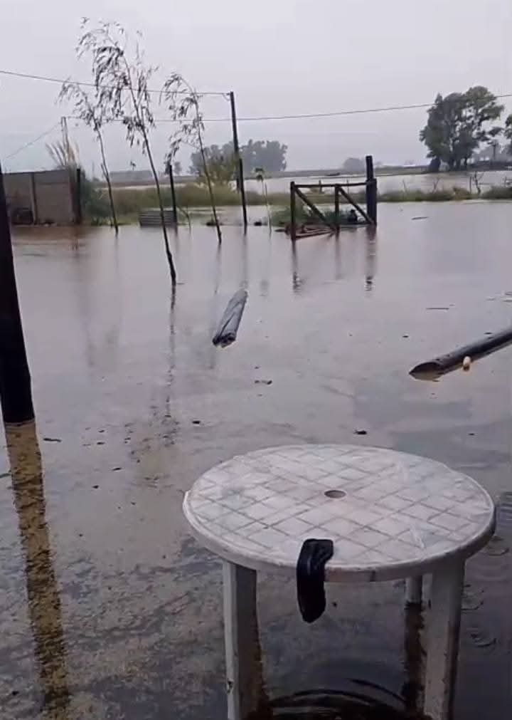 Calles anegadas en Facundo Quiroga tras intensas lluvias que superan los 130 mm