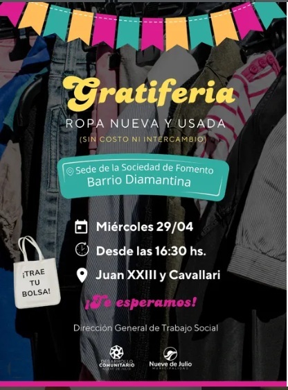 Una nueva jornada de solidaridad y acompañamiento comunitario tendrá lugar en el Barrio Diamantina con la realización de una gratiferia de ropa abierta a toda la comunidad.