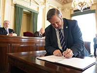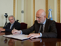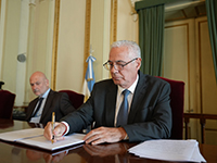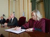 Durante el acto rubricaron el proyecto de ley el presidente del CMFBSAS, Matías Rappazzo; la presidenta de la Comisión de Funcionarios de esa entidad, Erika Rodríguez Merino; el presidente del Colegio de Abogados de la provincia de Buenos Aires (COLPROBA), Bienvenido Rodríguez Basalo; y el secretario general de la AJB, Hugo Daniel Russo.
