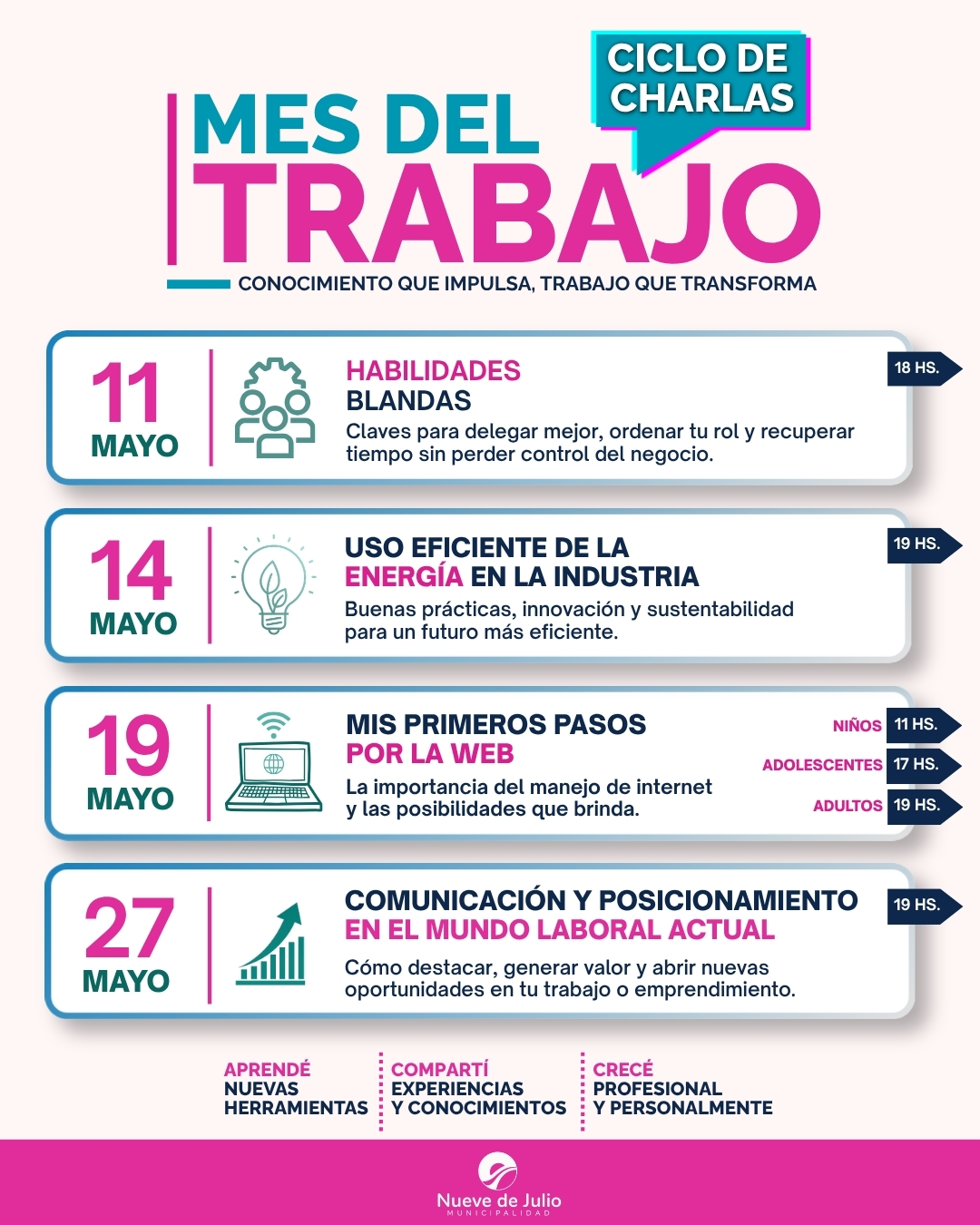Con una propuesta pensada para acompañar los desafíos del mundo laboral actual, durante mayo se desarrollará el ciclo de charlas “Mes del Trabajo”, una iniciativa que combina formación, intercambio y actualización de conocimientos.